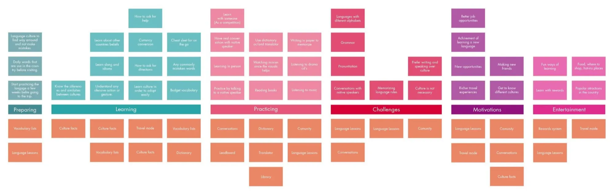I used the interviews to create a mental model to understand the needs and wants of the users better. This also help me come up with features that could help the users in their language learning journey.